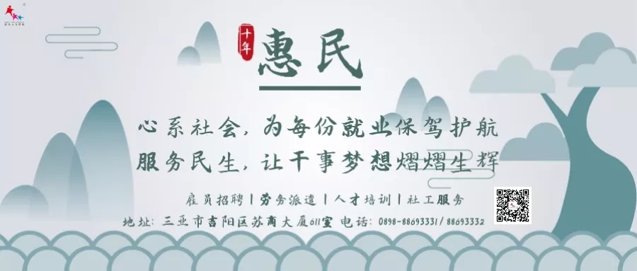 溫馨提示:惠民人力資源唯一官方網(wǎng)站:惠民人力資源網(wǎng)http://www.vvsdd.com/;公眾號(hào):惠民人力資源(HMRL_888);招聘辦公電話:0898-88693332,辦公手機(jī):13307678917(僅用于通知信息 ,微信同號(hào)),請(qǐng)廣大關(guān)注我司的求職者認(rèn)準(zhǔn)官方賬號(hào),不要輕信其他虛假詐騙賬號(hào),切勿輕易點(diǎn)開他人發(fā)送的鏈接。如遇到非上述官方渠道發(fā)布的信息,請(qǐng)及時(shí)與我們聯(lián)系辨別真?zhèn)危?jǐn)防上當(dāng)受騙。若有人惡意騷擾和有欺騙行為,我司保留追究其法律責(zé)任的權(quán)力。
